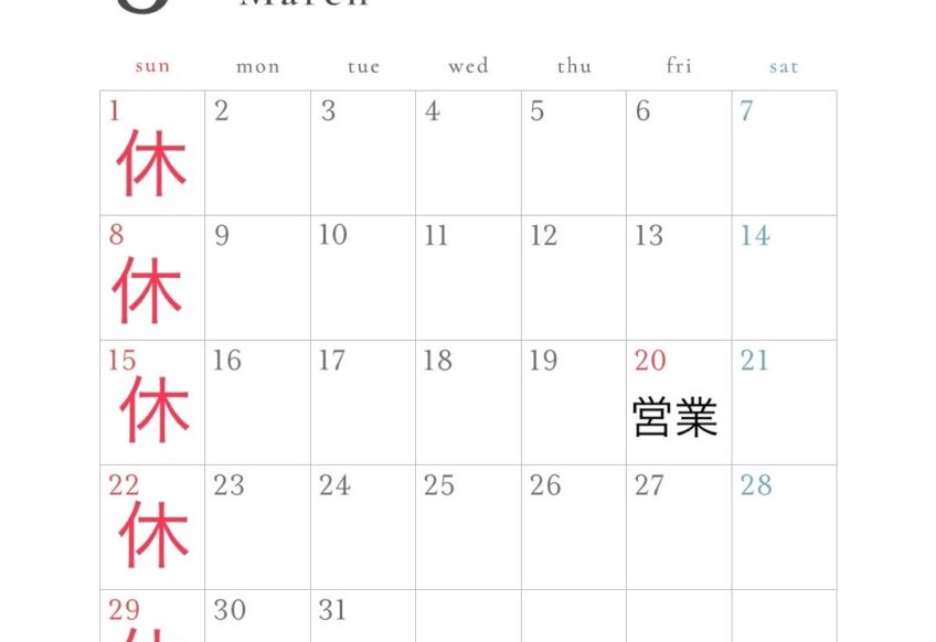 3月営業日のお知らせ